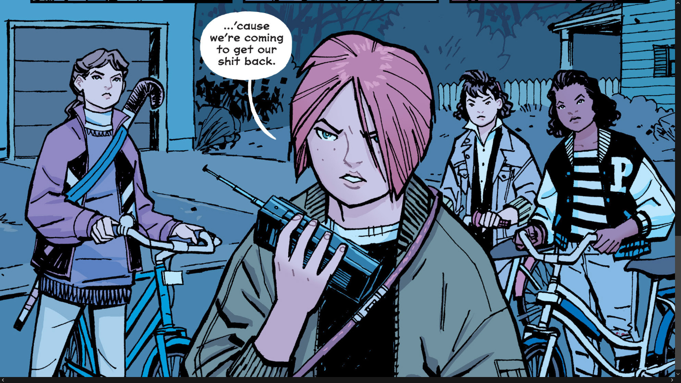 “Na madrugada depois do Dia das Bruxas de 1988, quatro entregadoras de jornal de 12 anos descobrem o que pode ser a história mais importante de todos os tempos! Drama suburbano, ficção científica, viagem no tempo e mistérios sobrenaturais colidem nessa série sobre nostalgia, primeiros empregos e os últimos dias da infância.”