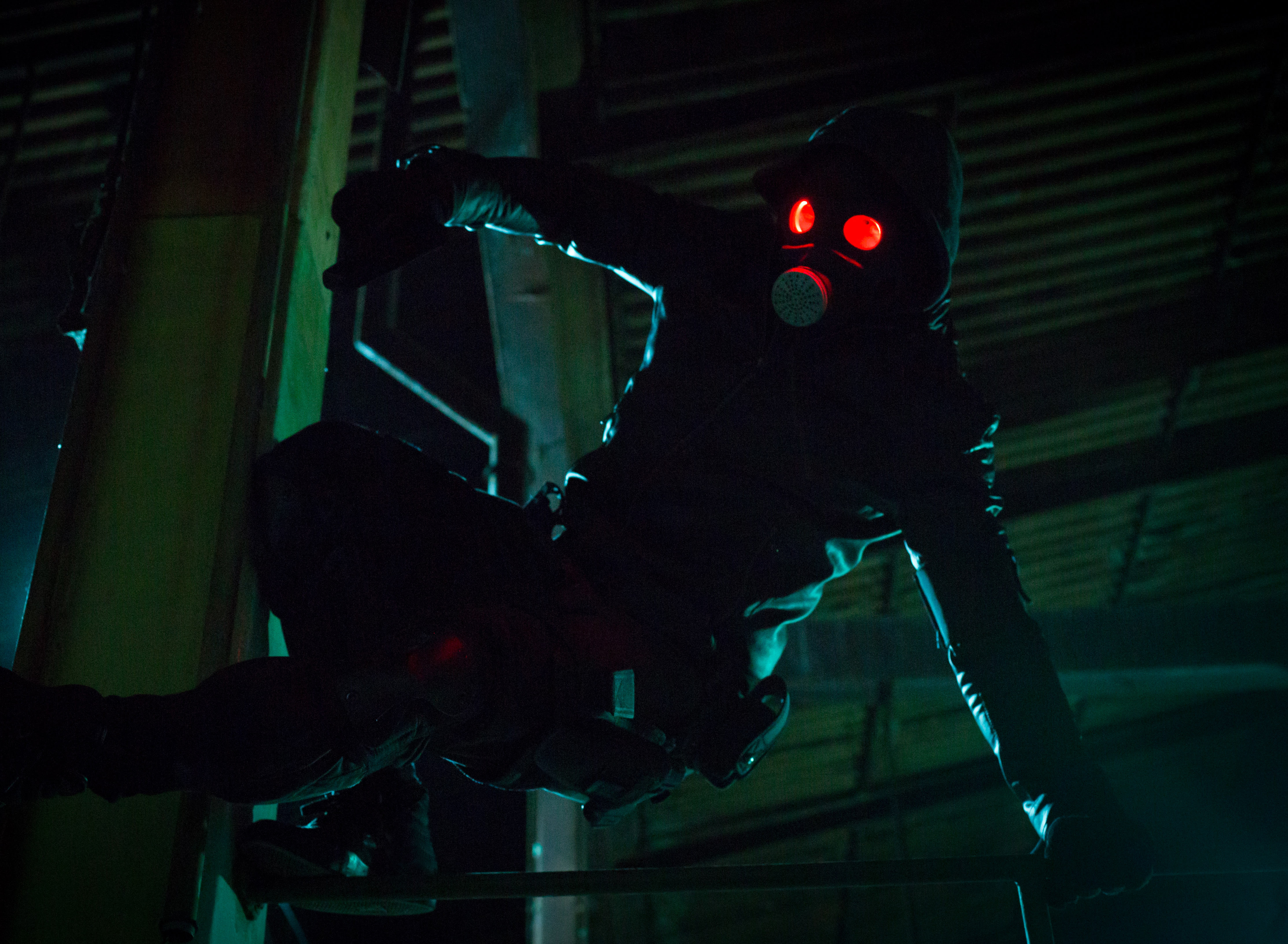Vestindo sua emblemática máscara respiratória, com brilhantes olhos vermelhos, o personagem interpretado pelo ator Kiko Pissolato utiliza também um uniforme completamente negro para perseguir políticos, empresários e agentes corruptos.