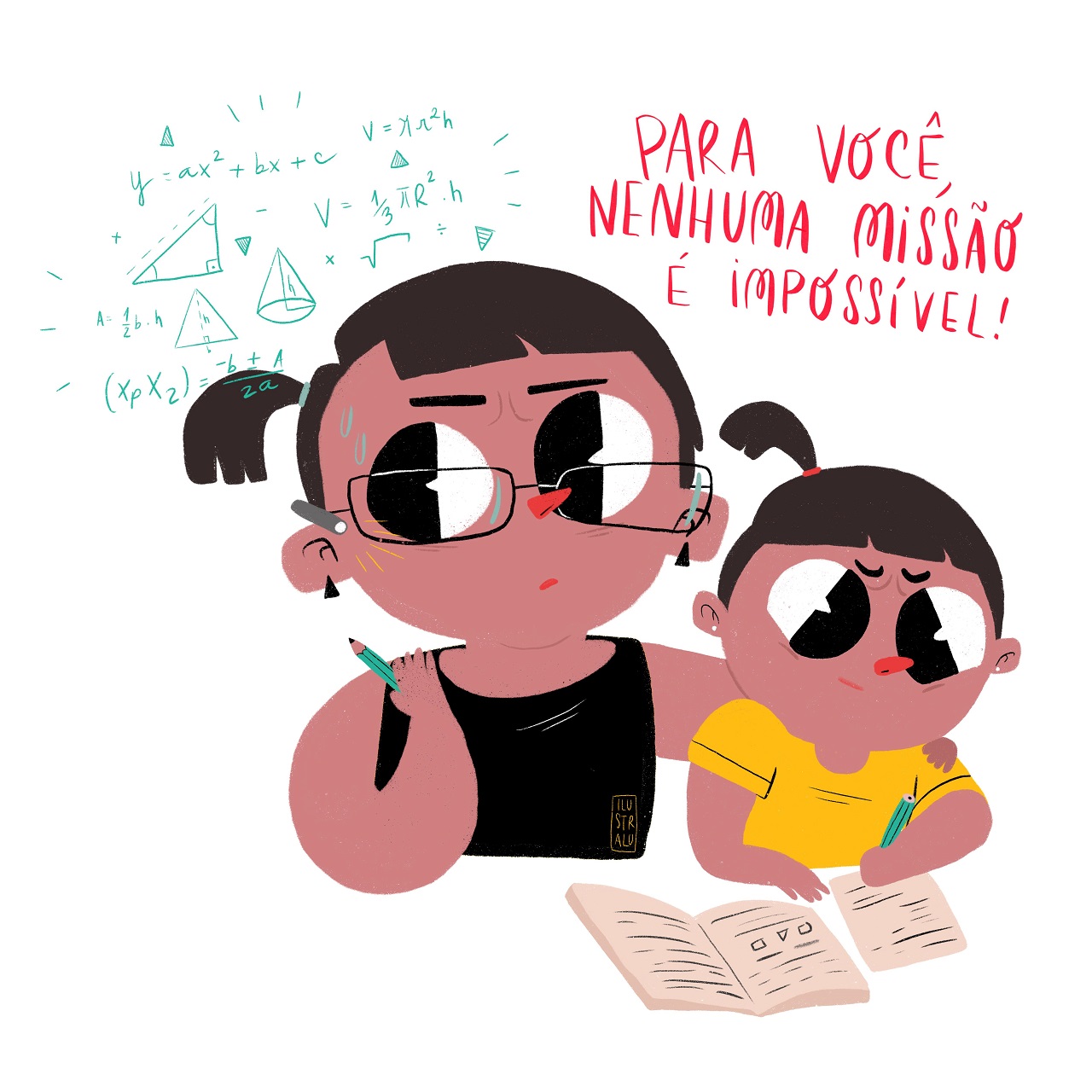 Para as mães heroínas, por exemplo, que enfrentam desagradáveis insetos voadores ou trocam aquelas fraldas ‘atômicas’, as ilustrações são inspiradas em Star Wars e Vingadores; as que precisam resolver equações de primeiro ou segundo grau, puxando da memória as distantes aulas de matemática, a arte lembra que educar, às vezes, é quase uma Missão Impossível.