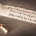 “Cersei da Casa Lannister, Primeira de Seu Nome, Rainha dos Ândalos e dos Primeiros Homens, Protetora dos Sete Reinos, convida o rebelde e bastardo Jon Snow a Porto Real, para se ajoelhar perante sua verdadeira Rainha ou sofrer o destino de todos os traidores”
