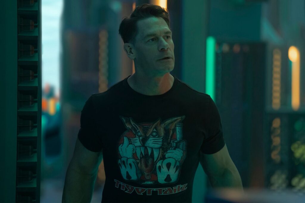 Porém, o maior destaque é como Gunn lida com essa mescla de humor e tragédia imersos em um mundo de heróis que John Cena consegue caracterizar muito bem na performance sensível e cartunesca, um dos grandes atores atuais de comédia que também é impressionante em encapsular os dramas dos traumas do personagem sendo capaz de se conectar com público em diferentes gêneros e mostrando todo o seu alcance como artista.