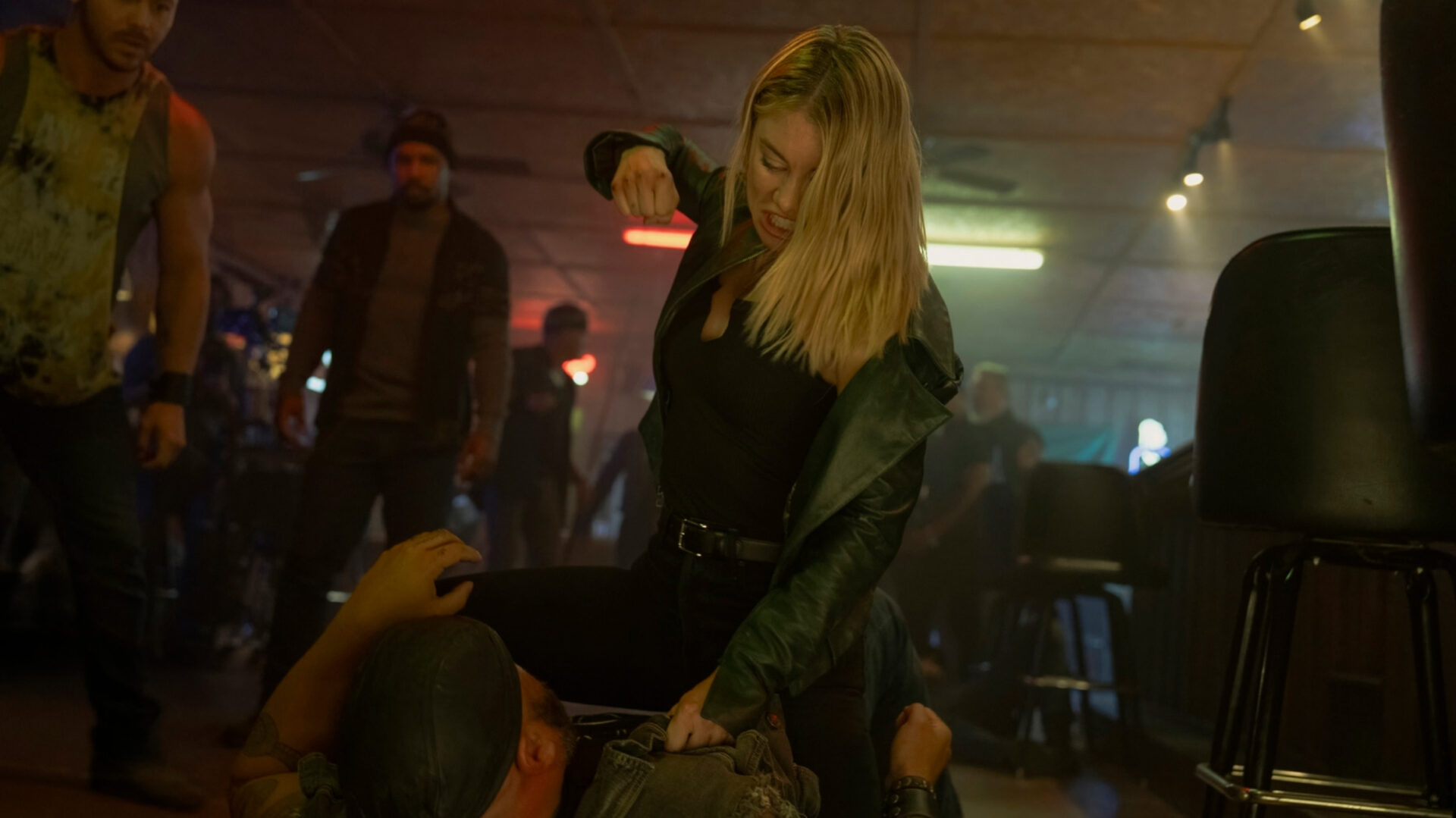 Há momentos também que exploram bem as questões de Harcourt, a sua raiva e comportamento impulsivo em brigas de bar ou a vigilância que Rick Flag Sr. (Frank Grillo) faz na casa de Pacificador em parte por consequências de Lex Luthor em Superman, mas também pelo Pacificador ter matado seu filho Rick Flag.