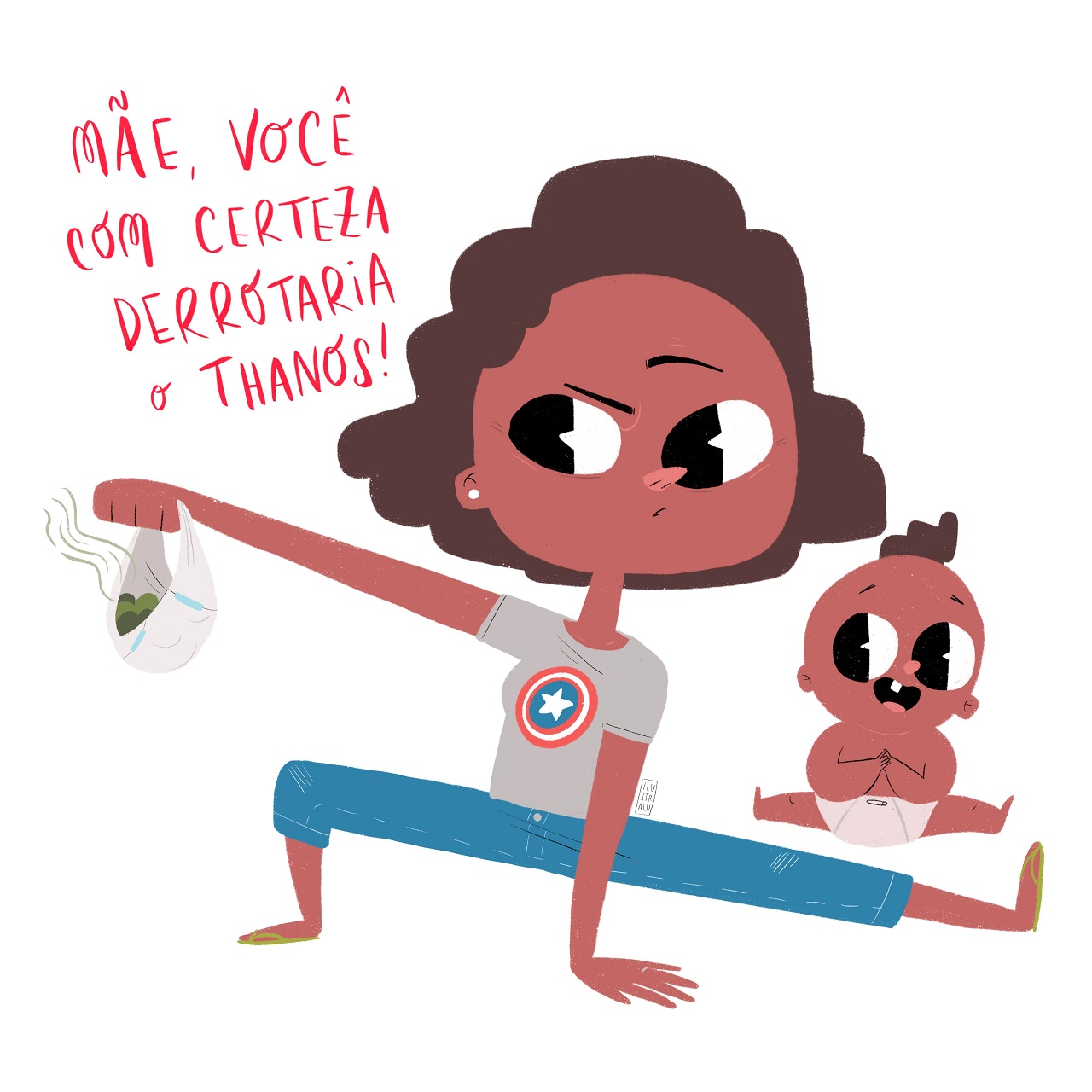 Para as mães heroínas, por exemplo, que enfrentam desagradáveis insetos voadores ou trocam aquelas fraldas ‘atômicas’, as ilustrações são inspiradas em Star Wars e Vingadores; as que precisam resolver equações de primeiro ou segundo grau, puxando da memória as distantes aulas de matemática, a arte lembra que educar, às vezes, é quase uma Missão Impossível.
