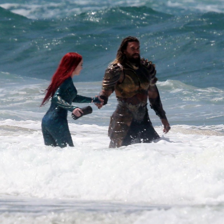 Jason Momoa encarna Aquaman em breve em Liga da Justiça, mas enquanto isso ele grava as cenas do filme solo do herói na Austrália, agora imagens estão circulando na internet dos bastidores das gravações onde podemos ver Momoa e Amber Heard caracterizados como Aquaman e Mera.