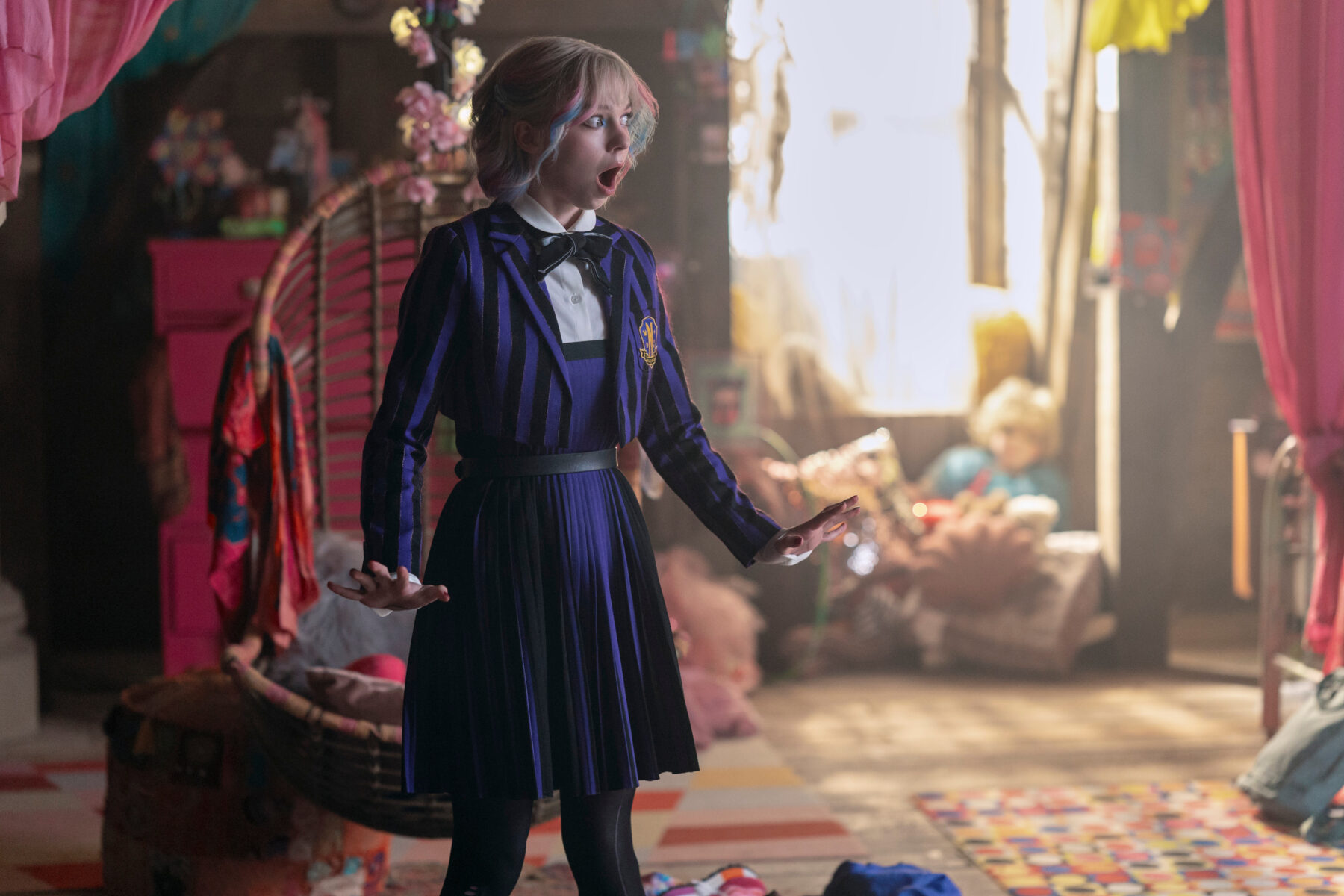 No elenco, Jenna Ortega, Emma Myers, Steve Buscemi, Catherine Zeta-Jones, Luis Guzman, Isaac Ordonez, Joy Sunday, Billie Piper, Luyanda Unati Lewis-Nyawo, Moosa Mostafa, Georgie Farmer, Victor Dorobantu, Evie Templeton, Owen Painter, Noah B. Taylor, Hunter Doohan.